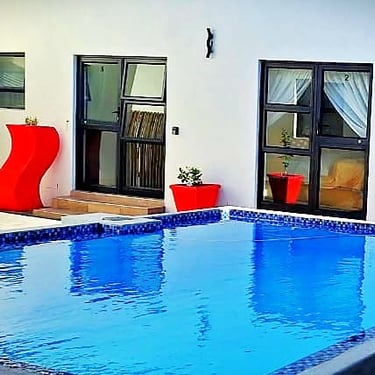Each room has its own separate entrance, which opens onto a private patio, providing easy access to the heated pool. Whether you're enjoying a peaceful moment on your patio or taking a dip in the pool, this seamless indoor-outdoor flow creates the perfect setting for relaxation. Every detail has been carefully considered to ensure your stay is both luxurious and comforting.